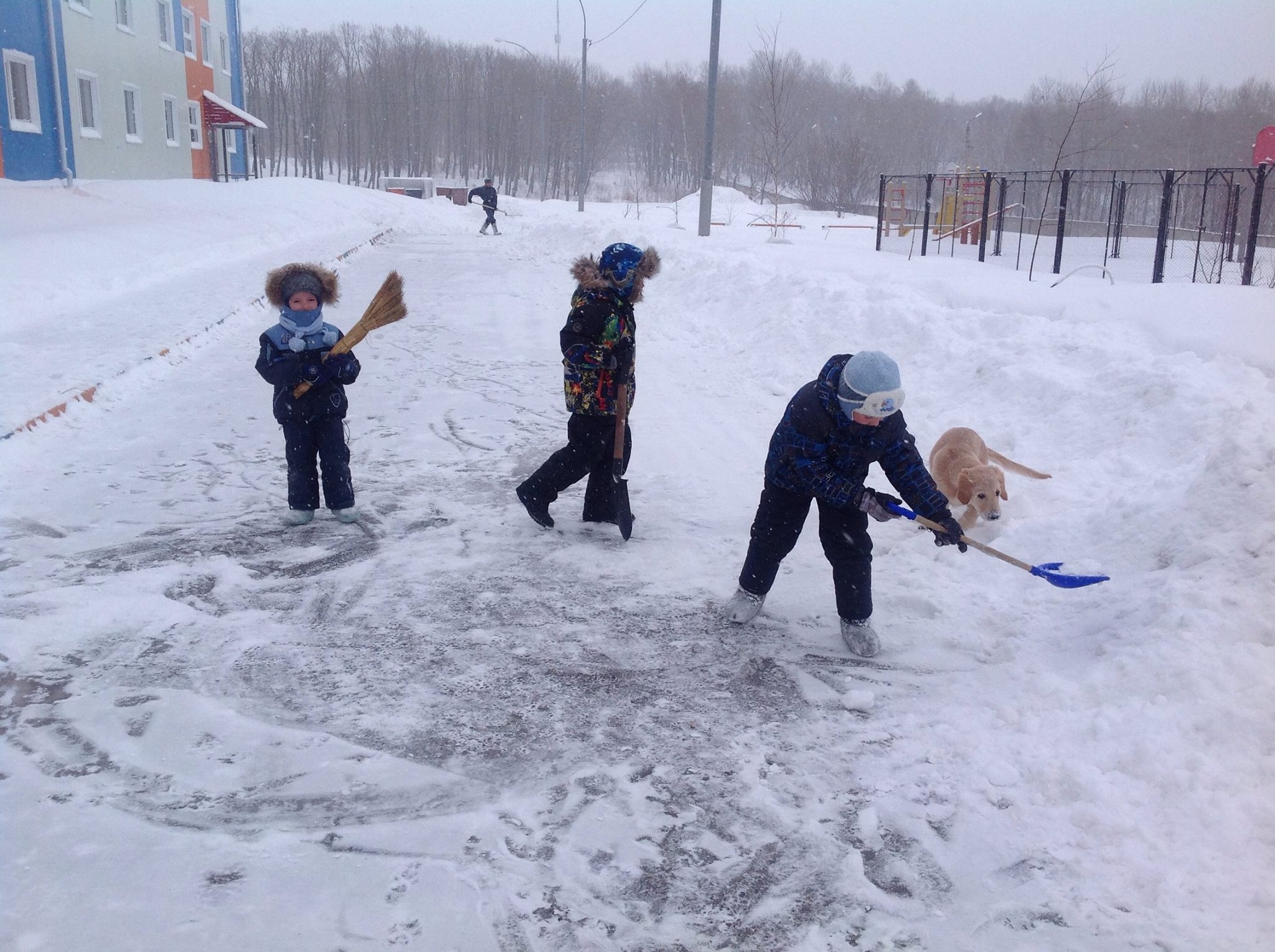 На борьбу с циклоном вышли даже самые маленькие спасатели. Пока их родители-военнослужащие Амурского спасательного центра МЧС России- оказывают помощь автовладельцам на федеральной трассе, в городе Хабаровске и проводят работы по расчистке от снега, их сыновья последовали примеру старших. Малыши взяли детские лопаты в руки и приступили к наведению порядка на территории около подъезда дома. Стараются юные спасатели ничуть не меньше взрослых.