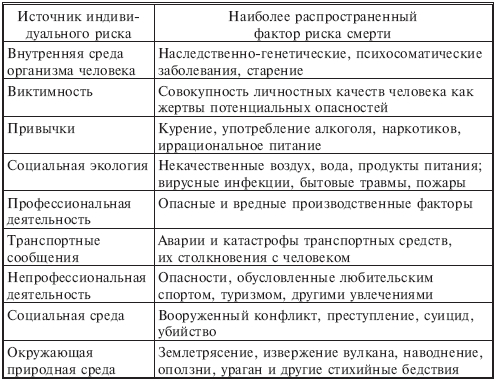 Источники и факторы индивидуального риска приведены в табл. 2.1.2.