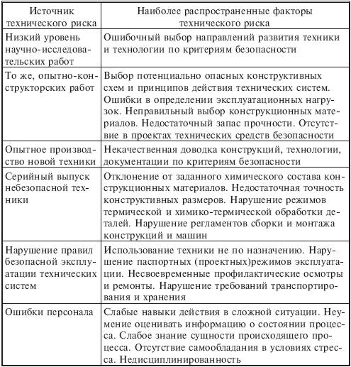 Источники и факторы технического риска приведены в табл. 2.1.3.