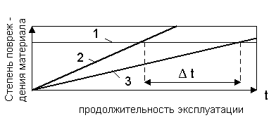 Рис. 3.8.1. Разрушающее действие на материал и сокращение срока службы изделия t: