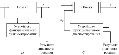 Рис. 9.7.1. Структурные схемы диагностирования: а - функционального; б - тестового