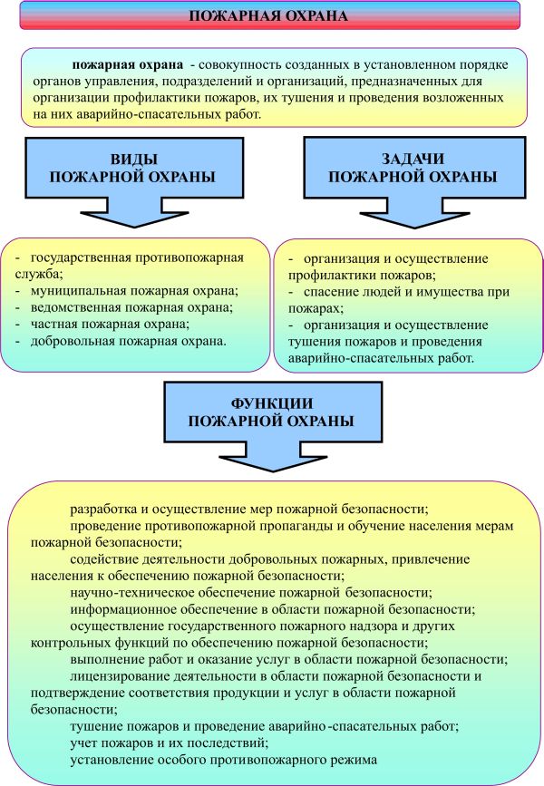 Муниципальная пожарная охрана; ведомственная пожарная охрана; частная пожарная охрана; добровольная пожарная охрана
