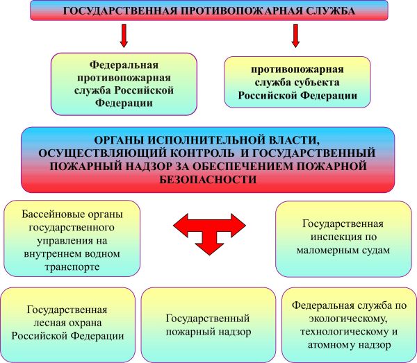 Как говорилось ранее система обеспечения пожарной безопасности состоит из органов государственной власти, органов местного самоуправления, принимающие участие в обеспечении пожарной безопасности в соответствии с законодательством Российской Федерации. К таким органам относятся: