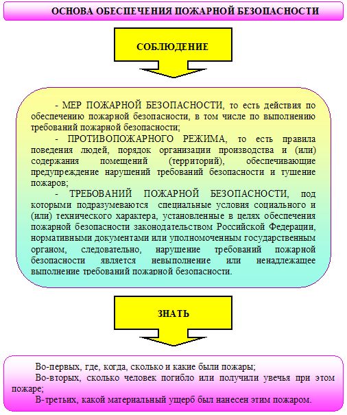 В соответствии с этими можно сделать вывод о том, что для обеспечения пожарной безопасности кроме соблюдения требований « Правил пожарной безопасности в Российской Федерации» необходимо знать: