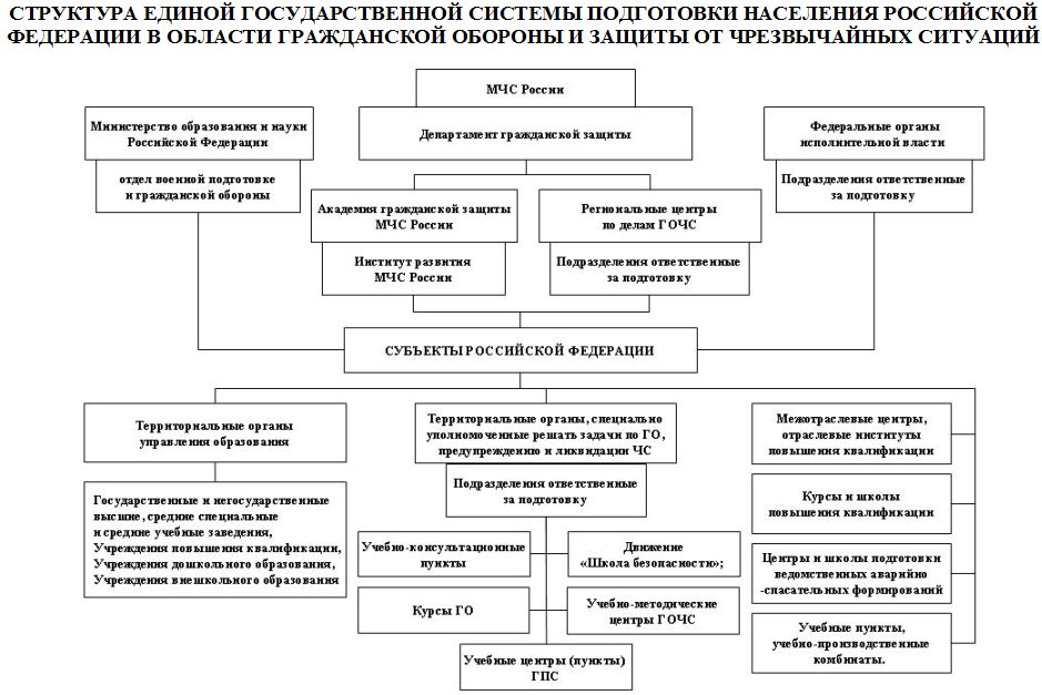 В настоящее время в Российской Федерации функционирует единая государственная система подготовки населения в области гражданской обороны и защиты от чрезвычайных ситуаций, которая состоит из нескольких уровней: