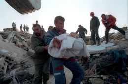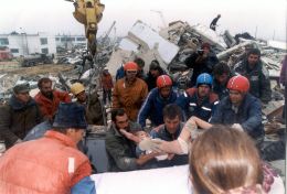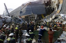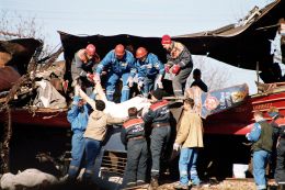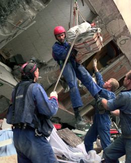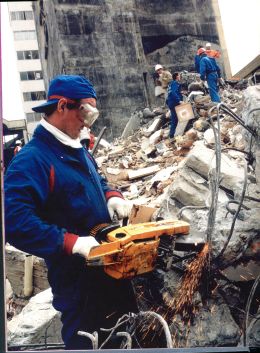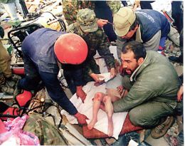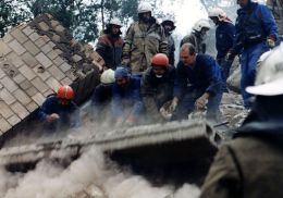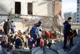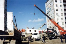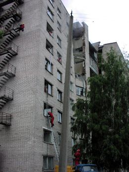 обрушение неустойчивых элементов конструкций поврежденных и разрушенных зданий;