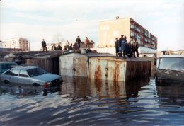 Здания, периодически попадающие в зону затопления, теряют капитальность: гнилью повреждается дерево, отваливается штукатурка, выпадают кирпичи, подвергаются коррозии металлические конструкции, из-за размыва грунта под фундаментом происходит неравномерная осадка зданий и, как следствие, появляются трещины.