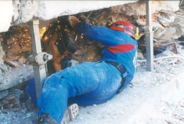 Работа ведется поочередно, 2–3 спасателя разбирают и извлекают обломки, 2–3 — относят их в отвал.