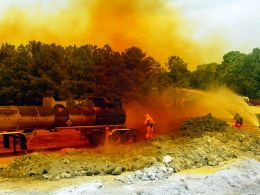 Личный состав, подающий пенные стволы для тушения разлившихся жидкостей, должен быть одет в теплоотражательные костюмы или надежно защищен распыленными струями воды.