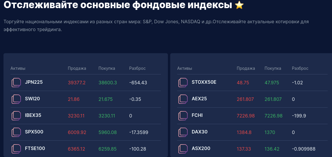 Финансовая биржа — международная компания, которая предоставляет доступ трейдерам к высоколиквидным рынкам. Новички и опытные инвесторы могут использовать фиатные пары, ценные бумаги крупных компаний из Fortune500, фондовые индексы, биржевые товары.