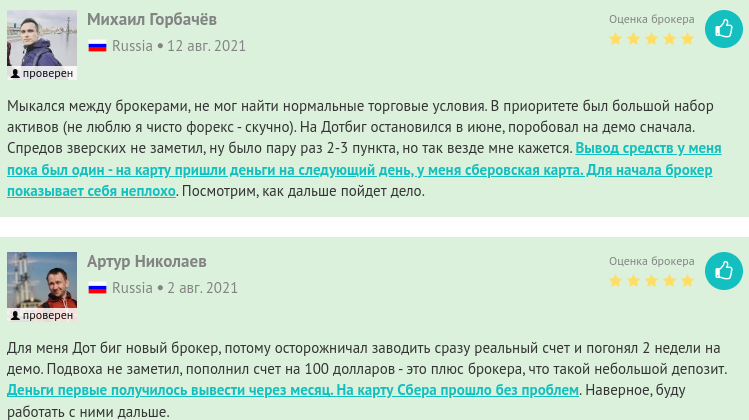Финансовая биржа предлагает услуги начинающим и опытным трейдерам. Менеджеры компании помогают создать торговую стратегию, публикуют сигналы для входа и выхода из сделки. На внешних платформах о форекс брокере DotBig пользователи оставляют положительные отзывы. Дальнейшее решение о сотрудничестве принимать вам.