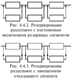 Резервирование раздельное с замещением отказавшего элемента одним резервным элементом (рис. 4.4.3). Это такой способ резервирования, при котором резервируются отдельные элементы объекта или их группы.