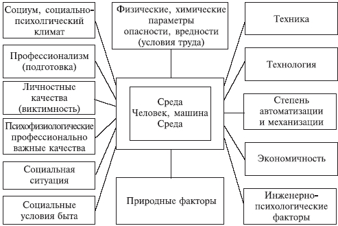 Не следует забывать о социально-психологическом аспекте надежности человеческого фактора в условиях политических столкновений в обществе (тревоги внешнего мира становятся фактором риска, когда у пульта обеспокоенный оператор). В целом сложная картина воздействий на человека, управляющего потенциально опасной техникой, представлена на рис.