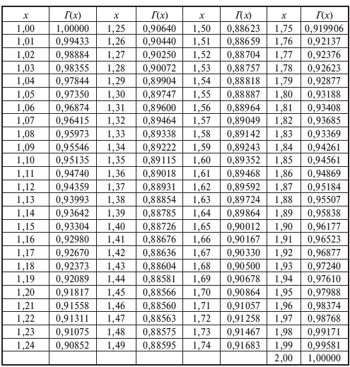 Значения гамма-функций