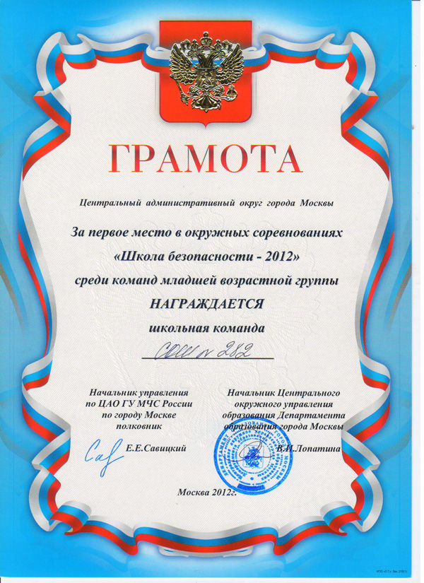 В рамках государственной программы Патриотическое воспитание граждан Российской Федерации на 2011 – 2015 годы при поддержке МЧС России в 2012 году проведено на различных уровнях более 17,5 тыс. соревнований «Школа безопасности», полевых лагерей «Юный спасатель» и «Юный пожарный», в которых приняло участие около 2,2 млн. детей, в том числе проведены девять межрегиональных соревнований «Школа безопасности» и полевых лагерей «Юный спасатель» во всех федеральных округах и г. Москве.