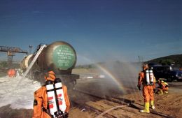 При горении цистерн с горючими жидкостями необходимо немедленно организовать их тушение. В случае угрозы перекидывания огня на соседние составы или транспортные средства горящие цистерны отводят в безопасное место, одновременно охлаждая и защищая соседние вагоны. Горящую цистерну нужно постоянно охлаждать водой, чтобы исключить вероятность взрыва. При горении паров жидкости над незакрытой горловиной цистерны закрывают крышку или набрасывают на нее кошму под защитой пожарных стволов.