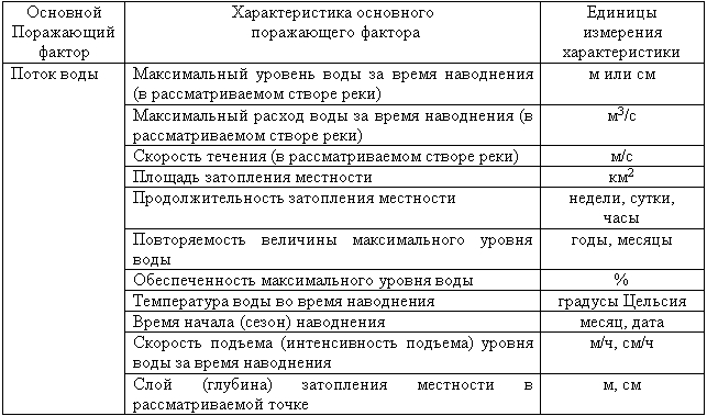 Характеристика основного поражающего фактора наводнений
