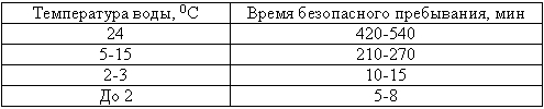 Время безопасного пребывания человека в воде