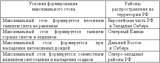 По условиям формирования стока и, следовательно, по условиям возникновения наводнений реки Российской Федерации подразделяются на четыре типа (табл.3.5.1).