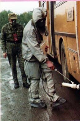 Во второй зоне опасности, где вероятно воздействие концентраций существенно меньших по сравнению с первой зоной и где маловероятно воздействие АХОВ в капельно-жидком состоянии, защита личного состава формирований может осуществляться только с помощью средств индивидуальной защиты органов дыхания - промышленных противогазов. Причем последние должны находиться под постоянным контролем на предмет определения времени отработки шихты. Использование средств защиты кожи в этой зоне необходимо лишь в случае наличия в атмосфере паров АХОВ резорбтивного воздействия.