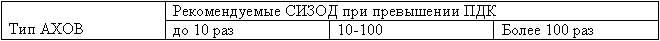 Рекомендации по выбору СИЗОД в условиях образования очага химического поражения в зависимости от типа АХОВ приведены в табл.