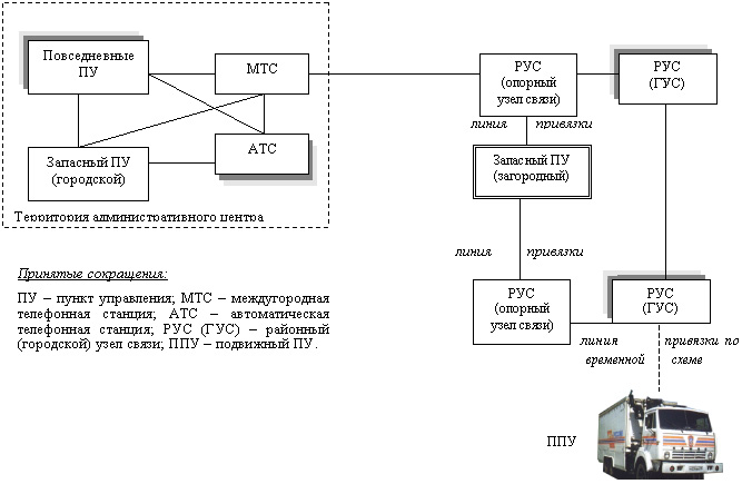 - состав, назначение и места расположения стационарных пунктов управления;