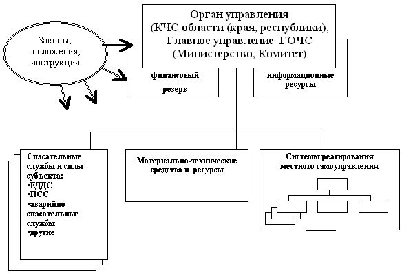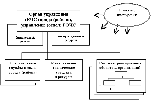 Создание системы реагирования на чрезвычайные ситуации, осуществляемое в рамках РСЧС, определение потребности в силах и средствах, состава органов управления является обязанностью соответствующего руководителя органа исполнительной власти субъекта Российской Федерации, местного самоуправления, предприятия и организации, отвечающих за обеспечение безопасности населения и персонала, работающего на потенциально опасных предприятиях и в организациях.
